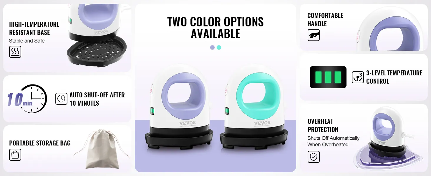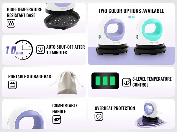 Veilige en geavanceerde functies: de automatische uitschakelfunctie na 10 minuten zorgt ervoor dat u nooit meer vergeet uw overhemdenpers uit te schakelen. De hittebestendige basis is bestand tegen hoge temperaturen en biedt stabiliteit terwijl uw werkruimte wordt beschermd.