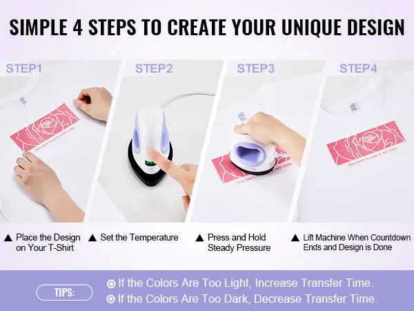 Afhankelijk van uw creatieve behoeften kunt u verschillende tijden en temperaturen kiezen. Deze overhemdenpers is geschikt voor diverse warmpersmaterialen. Door de eenvoudige bediening kunnen zelfs beginners er snel aan wennen.