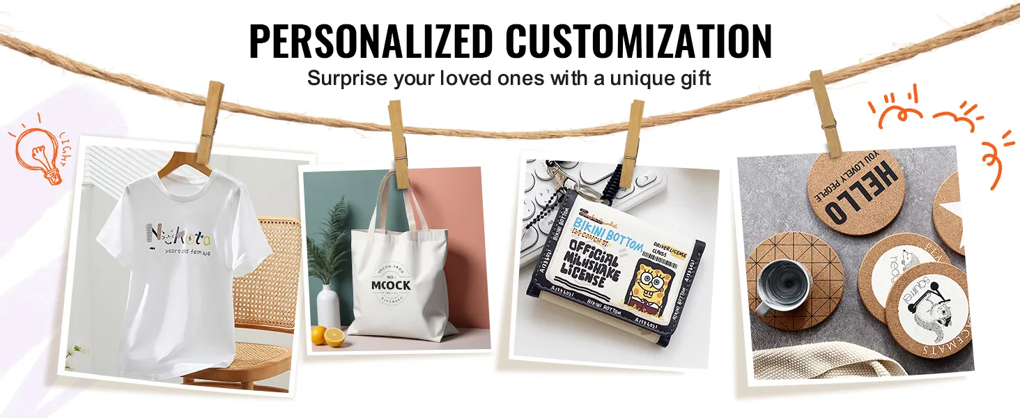 Wilt u een speciaal cadeau maken voor vrienden en familie? Onze sublimatiemachine is de perfecte keuze voor het produceren van op maat gemaakte artikelen zoals t-shirts, canvas tassen, portemonnees en onderzetters.
