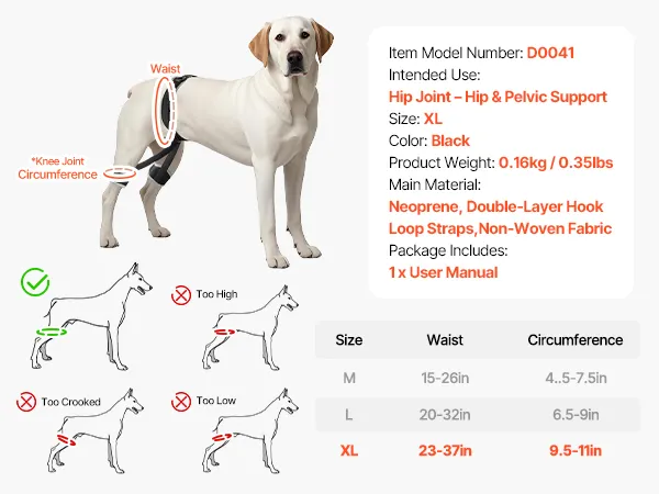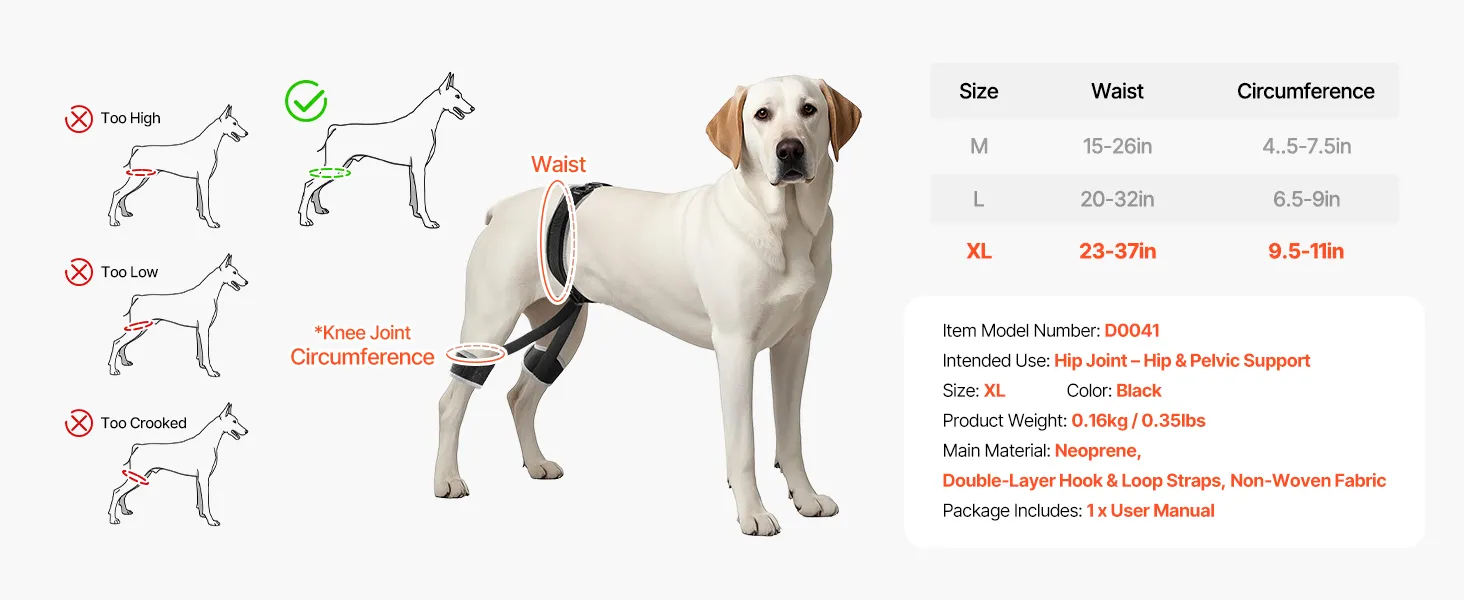 Effective Support and Correction: This dog hip brace is specifically designed for dogs with hip dysplasia, providing effective support and correction. It helps alleviate hip joint pain and discomfort during movement.