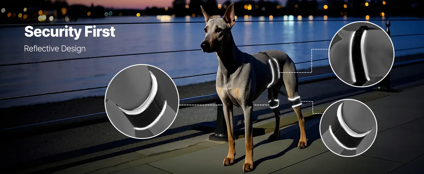 Secure Reflective Design: Made from four-way stretch fabric with reflective trim, this dog hip orthotics brace ensures a smooth surface that gently contacts your dog’s skin while improving safety during nighttime walks, ensuring visibility in low-light conditions.