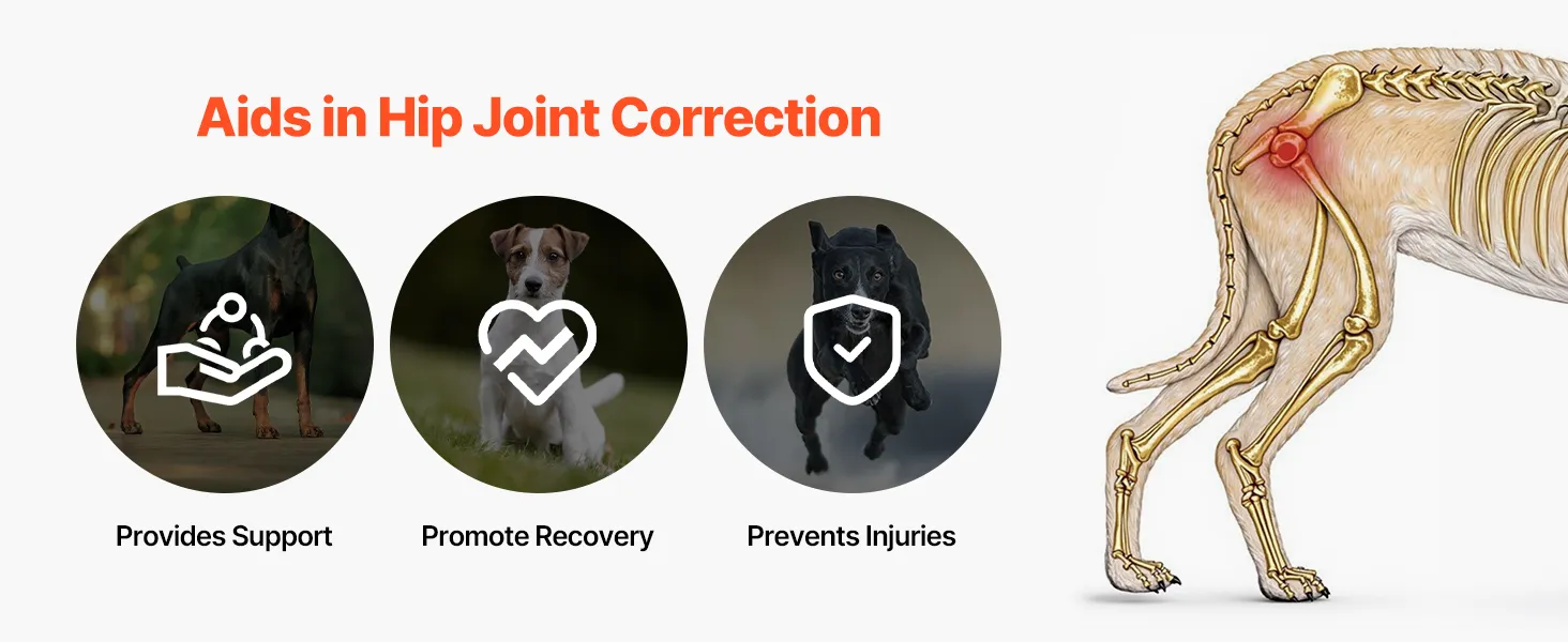 Movement-Based Correction: By correcting improper movement patterns and adjusting the range of motion, this dog hip support brace provides necessary hip joint support for dogs struggling to walk independently, helping them regain mobility.