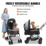 Met deze functie kunt u de kinderwagen aanpassen aan uw behoeften. De duwstang kan worden aangepast aan verschillende hoogtes. Het zorgt voor een comfortabele duwervaring voor huisdiereigenaren. U kunt hem gebruiken als 'drager' of bed in de auto. Deze veelzijdigheid maakt het mogelijk om al uw huisdieren te bedienen. Het maakt niet uit of u gaat wandelen of op reis gaat, deze kinderwagen voldoet aan al uw vereisten. Onze wandelmachine is ontworpen om mee te groeien met de behoeften van uw huisdier en de omkeerbare duwstang draagt bij aan de functionaliteit van de loopwagen. Een perfecte keuze voor degenen die op zoek zijn naar een aanpasbare en praktische oplossing is het VEVOR-ontwerp voor huisdierenkinderwagens.