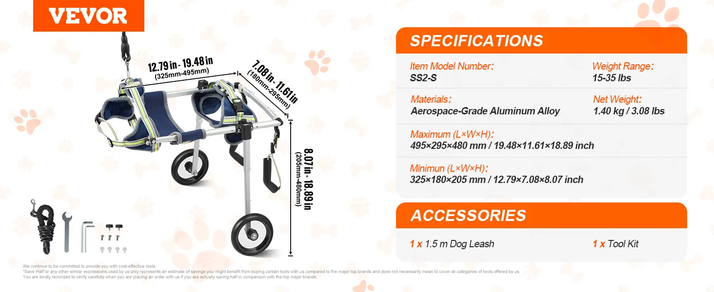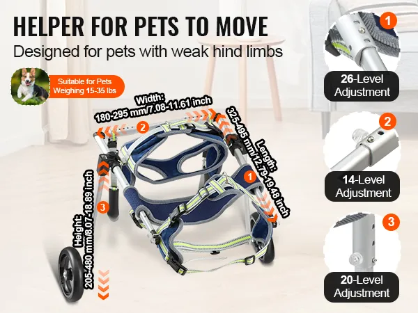 De VEVOR hondenkar voor achterpoten is gemaakt om verstelbaar te zijn. Hij is geschikt voor honden met een gewicht tussen 15 en 35 lbs. De banden kunnen worden aangepast om nauwsluitend om de heupen van het huisdier te passen. Dit zorgt voor comfort voor uw huisdier. Verstelbare functies zorgen voor een persoonlijke pasvorm, zodat u de rolstoel kunt aanpassen aan de grootte van uw huisdier. Het zorgt voor stabiliteit en een comfortabele rit. Het verstelbare ontwerp zorgt voor een betrouwbare en plezierige ervaring. Het garandeert ook dat de wielen in goede staat blijven na verloop van tijd. Een van de belangrijkste factoren is dat huisdieren groeien en een wisselend gewicht kunnen hebben.