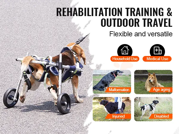 De VEVOR hondenrolstoel is voorzien van een 1,5m lange hondenriem. Deze riem biedt verbeterde controle en ondersteuning. Hiermee kunt u uw huisdier begeleiden terwijl hij/zij de rolstoel gebruikt. De riemen zijn sterk en betrouwbaar. Ze zijn ontworpen om het gewicht en de beweging van uw eigen huisdier aan te kunnen. De riem is gebouwd om het gewicht van uw huisdier te beheren en om hem/haar te helpen bij zijn/haar mobiliteit. De riem heeft een solide constructie. U kunt erop vertrouwen dat de riem uw geliefde veilig houdt tijdens buitenactiviteiten. Bovendien helpt het om veiligheidsrisico's te beperken die gepaard gaan met het gebruik van deze stoel.