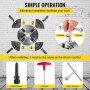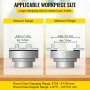 Internal jaws tighten around workpieces varying from 2"/45 to 2.5"/63 mm in size. External jaws spread inside of workpieces with pilot holes ranging from 2.4"/60 to 3.1"/78 mm.