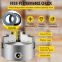 【HOGE PRECISIE CHUCK】 - De drie kaken van deze metalen boorkop zijn zelfcentrerend; de uitlijnnauwkeurigheid is kleiner dan of gelijk aan 0,003" / 0,07 mm. 6" buitendiameter, 160 Nm ingangskoppel en draait 3600 tpm als hoogste snelheid. Dat zorgt voor ideale verwerkingsresultaten.