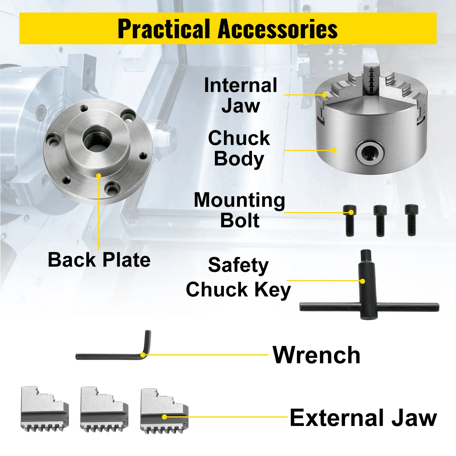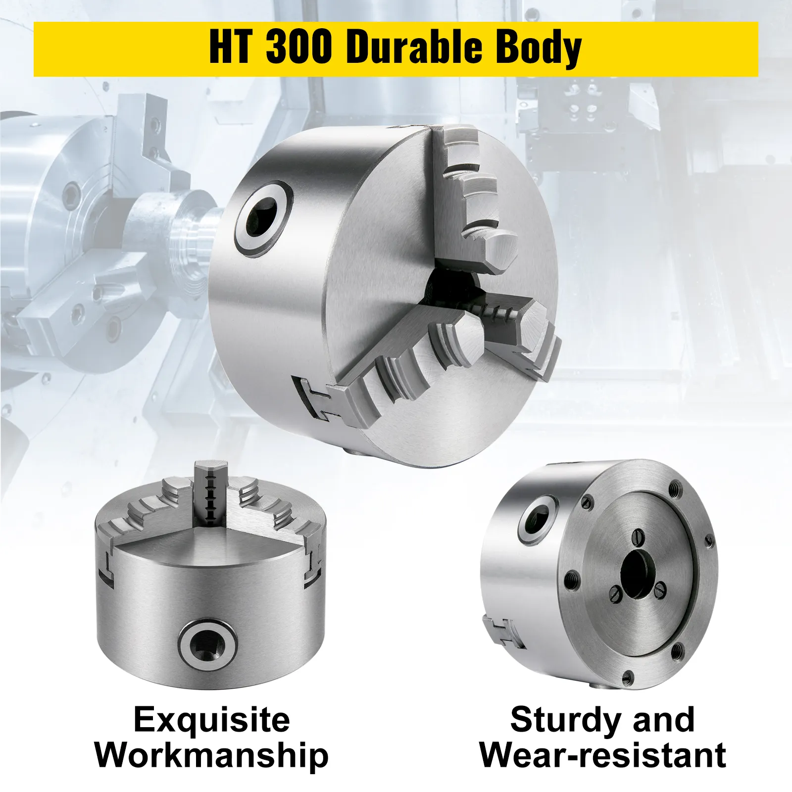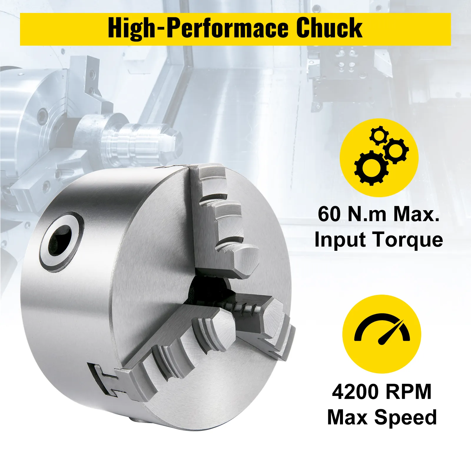 【HIGH PRECISION CHUCK】 - De drie klauwen van deze metalen klauwplaat zijn zelfcentrerend; de uitlijningsnauwkeurigheid is minder dan of gelijk aan 0,003"/0,07 mm. 4" buitendiameter, 60 Nm ingangskoppel en roteert 4200 tpm, aangezien de hoogste snelheid zorgt voor ideale verwerkingsresultaten.