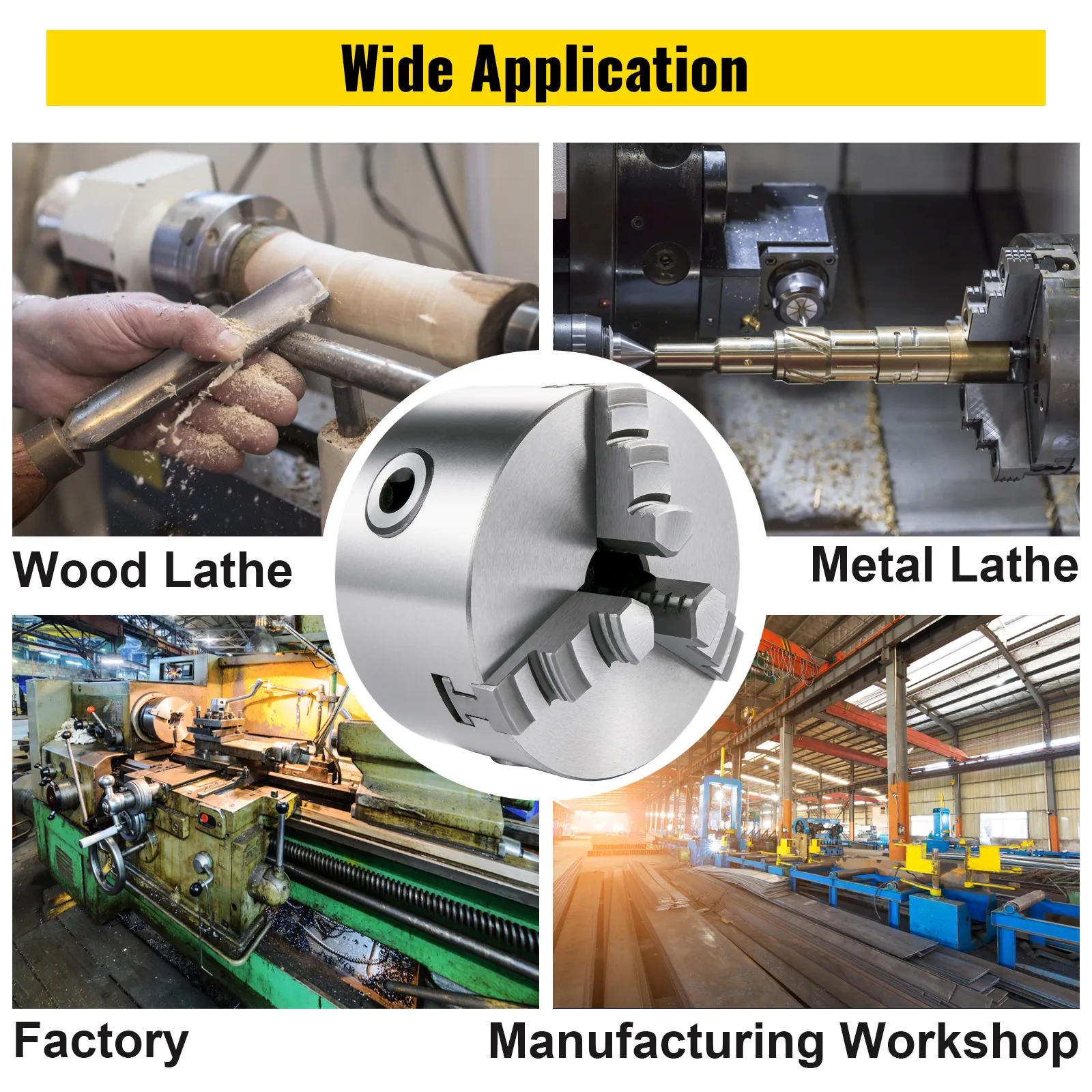 De klauwplaat met drie klauwen is geschikt voor verschillende universele draaibanken, economische CNC-draaibanken, slijpmachines, freesmachines, boormachines en gereedschapswerktuigaccessoires.