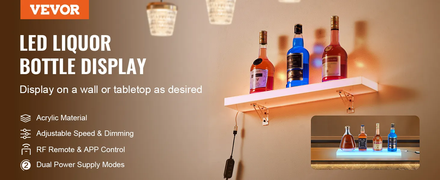 Combinatie van huishoudelijk en commercieel: dit LED-rek is een echte blikvanger voor elke bar of huis. Het zorgt voor een vrolijke sfeer en trekt de aandacht van uw gasten. Wandmontage bespaart ruimte. Dit product is niet alleen geschikt voor thuis, maar ook voor openbare ruimtes zoals commerciële bars, clubs, KTV's, zwembadfeesten, enz.