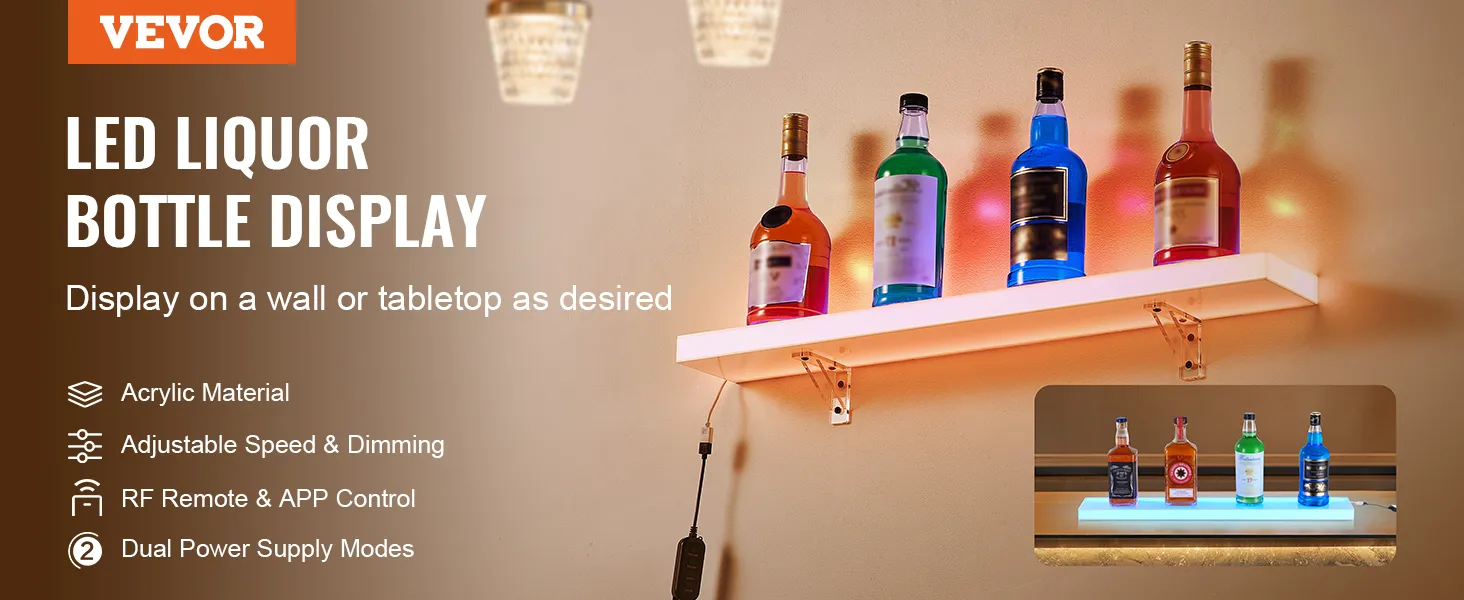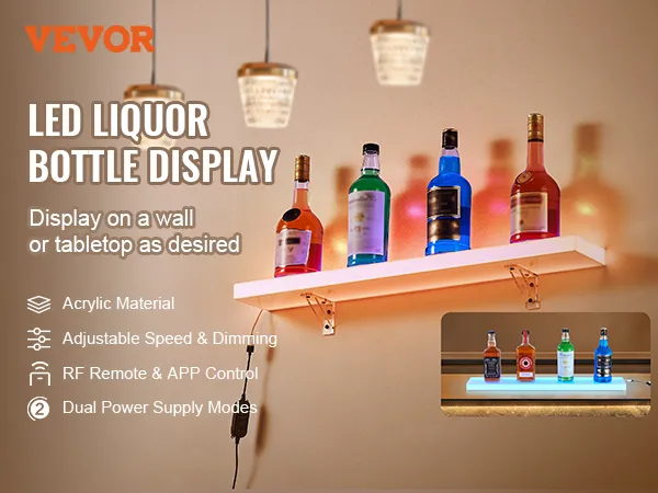 Combinatie van huishoudelijk en commercieel: dit LED-rek is een echte blikvanger voor elke bar of huis. Het zorgt voor een vrolijke sfeer en trekt de aandacht van uw gasten. Wandmontage bespaart ruimte. Dit product is niet alleen geschikt voor thuis, maar ook voor openbare ruimtes zoals commerciële bars, clubs, KTV's, zwembadfeesten, enz.