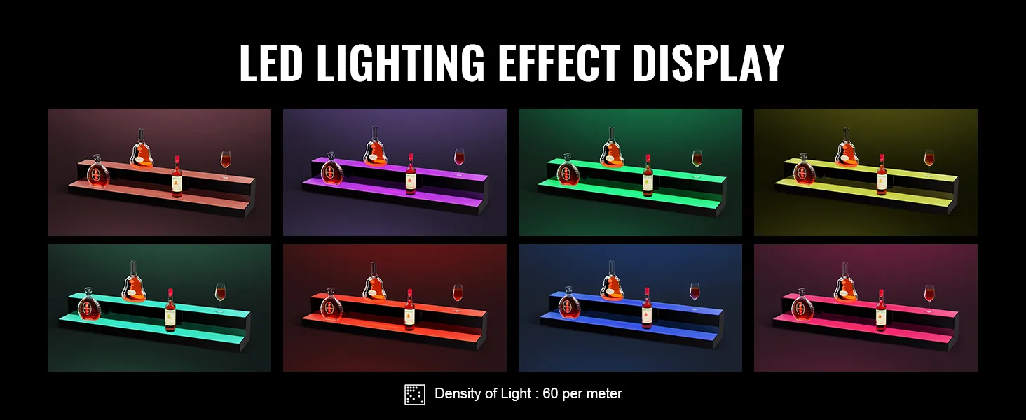 Met meer helderheid en een gelijkmatiger lichteffect zal dit verlichte flessenrek uw bar, club en leven opfleuren.