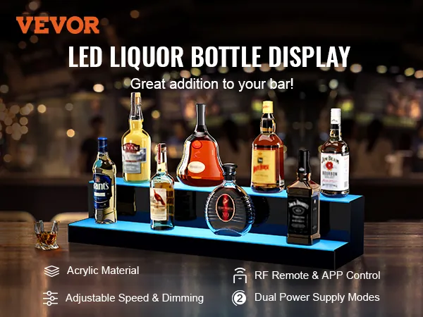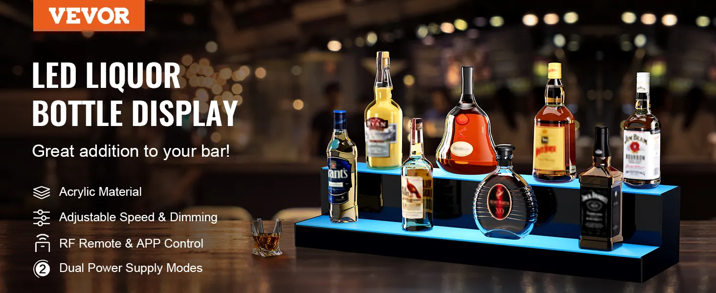 Doorschijnend acrylrek: ons rek is gemaakt van acryl voor heldere kleuren en een grotere capaciteit. Bovendien is het gepolijste oppervlak waterdicht en gemakkelijk schoon te maken. Maak van deze plank een unieke toevoeging aan je bar en maak je klaar om het leven ten volle te leven!