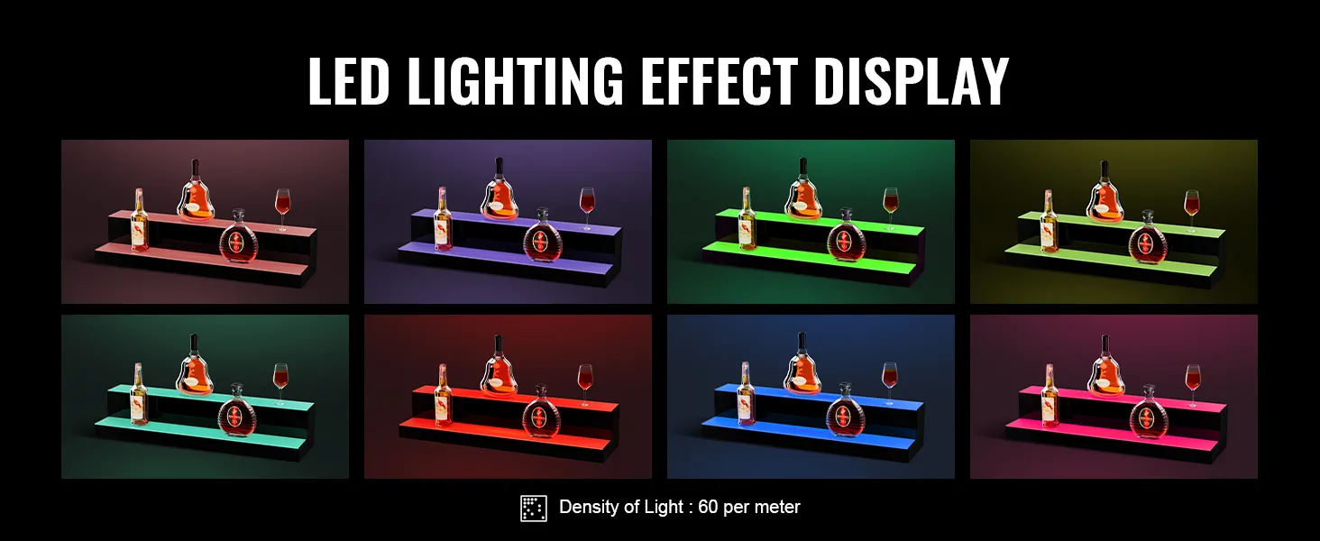 Met meer helderheid en een gelijkmatiger lichteffect zal dit verlichte flessenrek uw bar, club en leven opfleuren.