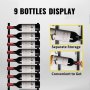 VEVOR wandgemonteerd wijnrek voor het tentoonstellen van 9 flessen met aparte opbergruimte en gemakkelijke toegang.