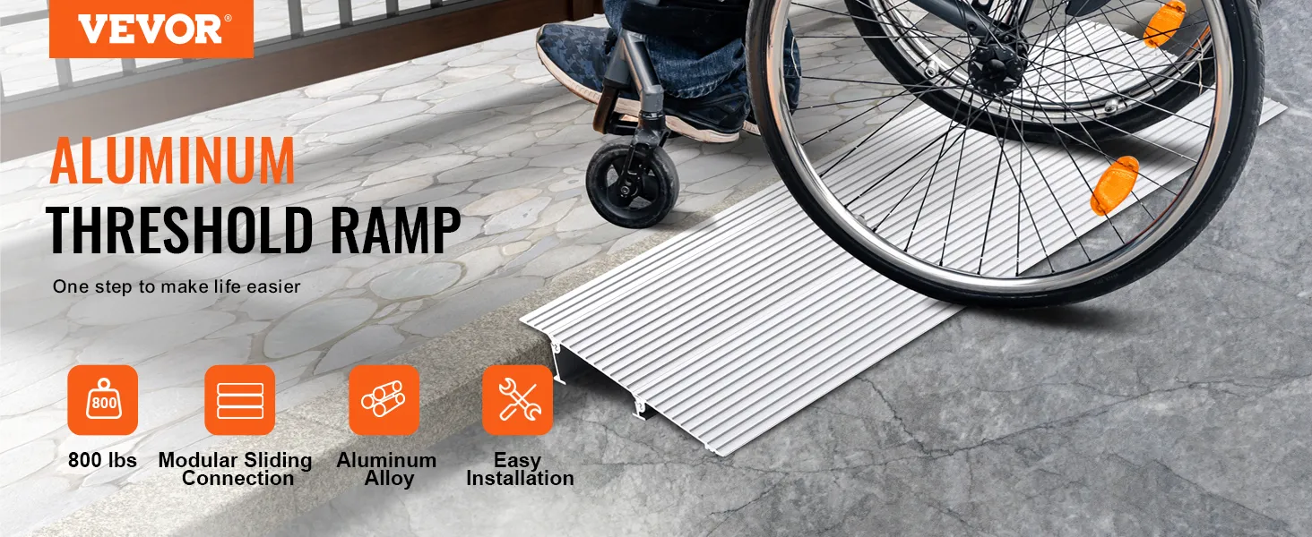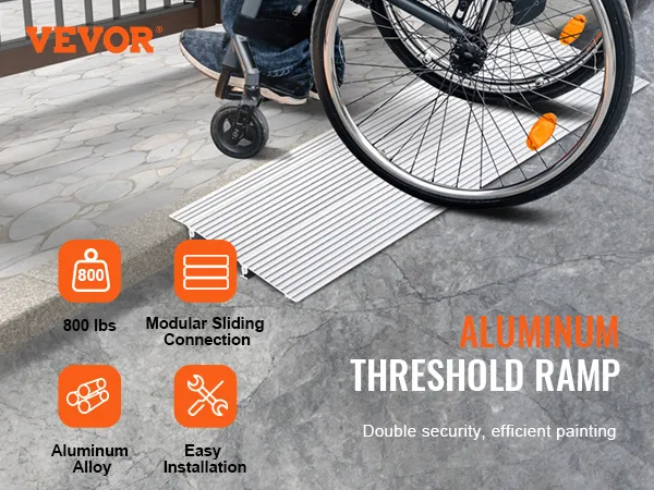 De VEVOR rolstoeldeurhelling heeft een maximaal draagvermogen van 800 pond. Dit maakt hem geschikt voor veel verschillende doeleinden. Hij kan rolstoelen, scooters en andere items met wielen aan. De hoge draagkracht zorgt ervoor dat de helling een zeer breed scala aan gebruikers kan ondersteunen. Ons doel is om een interdisciplinaire overgang te bieden voor mobiliteitshulpmiddelen. Wij zijn er om u te helpen met vertrouwen van het ene niveau naar het andere te gaan. De sterke ondersteuningscapaciteit betekent dat u de helling met vertrouwen kunt gebruiken, wetende dat deze helling het gewicht aankan.