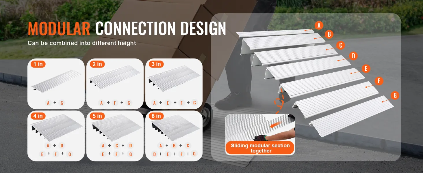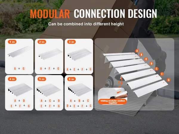 Dit is met name het geval bij de VEVOR deurdrempelhelling vanwege het modulaire ontwerp. Dit betekent dat u eenvoudig meerdere eenheden kunt verbinden. Schuif en voeg ze gewoon samen om het gebied te vergroten of de helling te verkleinen. Het is perfect voor verschillende omgevingen. U kunt het in deuropeningen, over trappen of overal waar u een soepele overgang nodig hebt, plaatsen. De modulaire stijl zorgt ervoor dat we de helling kunnen aanpassen aan uw specifieke behoeften. Die flexibiliteit maakt dit gereedschap ongelooflijk veelzijdig voor het overwinnen van hoogteverschillen. Bovendien heeft de helling een gemakkelijke opslagcapaciteit. Omdat de modulaire aard van onze helling ook opslag en transport mogelijk maakt, kunt u hem opsplitsen in kleinere eenheden voor gemakkelijk dragen en opbergen.