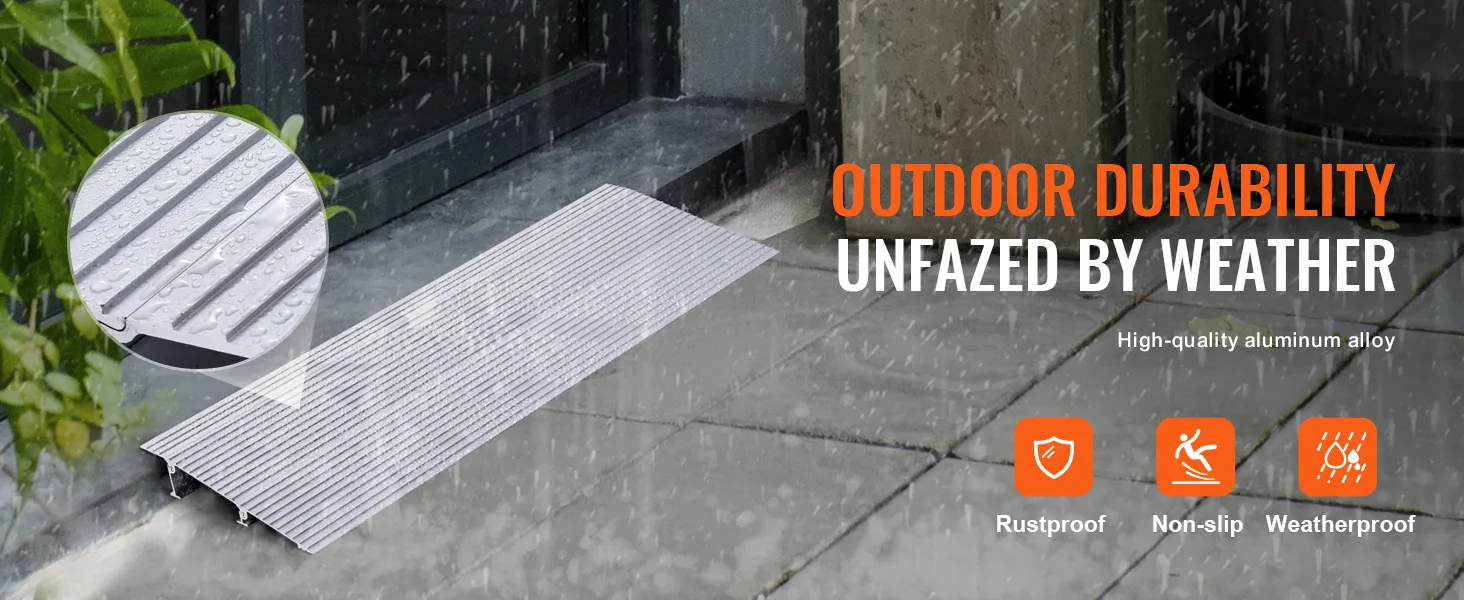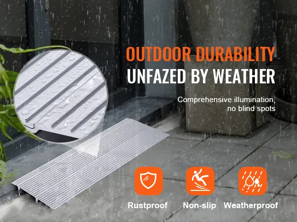 Een van de belangrijkste kenmerken van de VEVOR deurdrempelhelling is het antislipoppervlak. Het heeft een antislipoppervlak dat betrouwbare grip biedt. Dit oppervlak zorgt ervoor dat de helling veilig te gebruiken blijft, zelfs in natte omstandigheden. Ongeacht of het regent of sneeuwt, u kunt erop rekenen dat de helling veiligheid biedt. De antislipfunctie is essentieel om ongelukken te voorkomen en soepele overgangen te garanderen. Daarom is het ideaal voor zowel binnen- als buitengebruik. U kunt de helling met vertrouwen gebruiken, wetende dat deze een gemakkelijke doorgang biedt, ongeacht de weersomstandigheden.