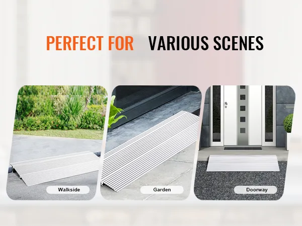 Deze rolstoeldeurhelling is lichtgewicht en draagbaar. Het is gemakkelijk te verplaatsen en te vervoeren. U kunt hem overal mee naartoe nemen, zodat u altijd een betrouwbare overgangsoplossing hebt. De draagbaarheid van de helling is vooral handig voor mensen die zich tussen verschillende locaties moeten verplaatsen. Of u nu sociale bijeenkomsten of zakelijke bijeenkomsten bijwoont, de helling kan gemakkelijk worden vervoerd. Omdat het lichte karakter niet ten koste gaat van de sterkte of stabiliteit, is het een betrouwbare keuze voor verschillende omgevingen.