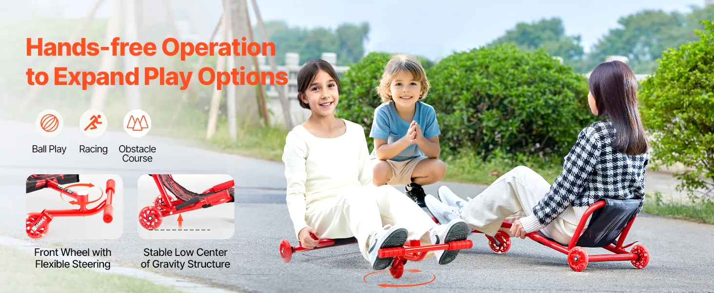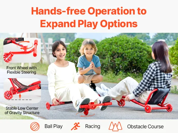 The Ideal Companion for Kids: This is the ideal gift for children, bringing joy and fun while enhancing their athletic skills and physical fitness. Our drift cart for kids helps improve balance, spatial awareness, and coordination. Team up with more kids for obstacle courses, races, and various outdoor activities!