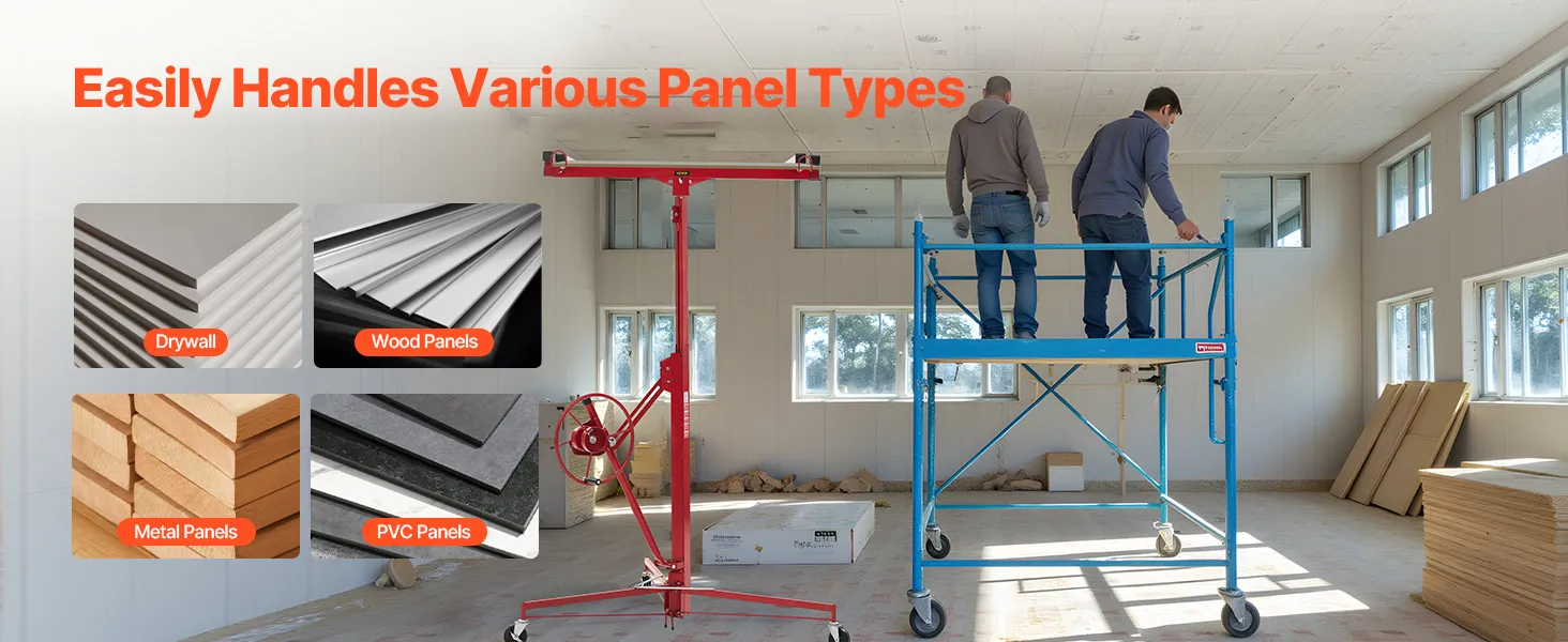Deze lift kan gemakkelijk diverse materialen verwerken, waaronder gipsplaten, houten lambrisering, metalen platen, pvc-panelen en meer, en voldoet daarmee aan uw uiteenlopende renovatiebehoeften.
