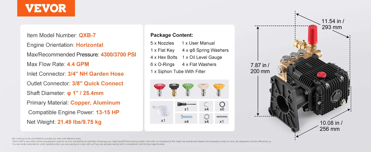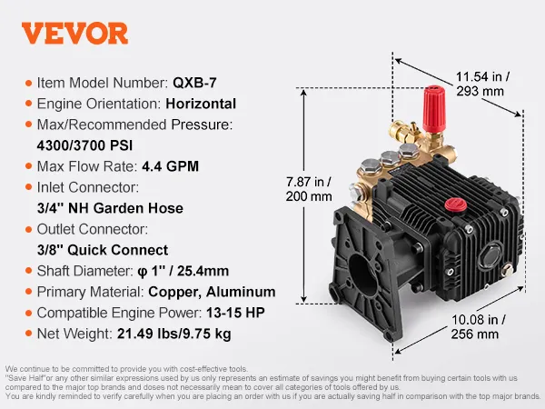 Brede compatibiliteit: deze hogedrukreinigerpomp heeft een standaard SAE-schroefpatroon en is compatibel met verschillende horizontale motorhogedrukreinigers, waaronder Simpson MorFlex-modellen 40224, 40225, 40226 en Santoprene-model 41182. Pas de motoruitlijning, PSI, GPM, motorasdiameter en stroominlaat aan pompuitlaatpoorten om compatibiliteit te garanderen.