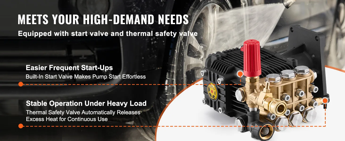 Het vereenvoudigde opstartproces en de verbeterde beveiligingsfuncties maken de bediening gemakkelijker en veiliger. Met onze hogedrukreinigerpomp kunt u zich concentreren op de taak die u moet uitvoeren, waardoor uw productiviteit en tevredenheid toenemen.