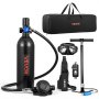 VEVOR Mini Duikfles 1 L, Draagbare Longfles voor onderwaterademhaling, Herbruikbare zuurstofcilinder voor maximaal 20 minuten duiktijd, Duikuitrusting met adapter en snorkelmasker