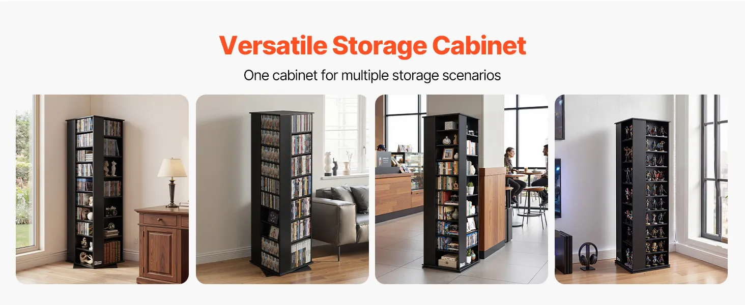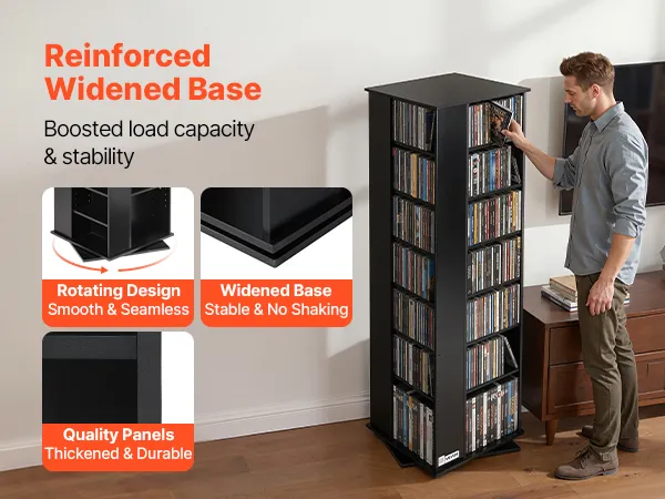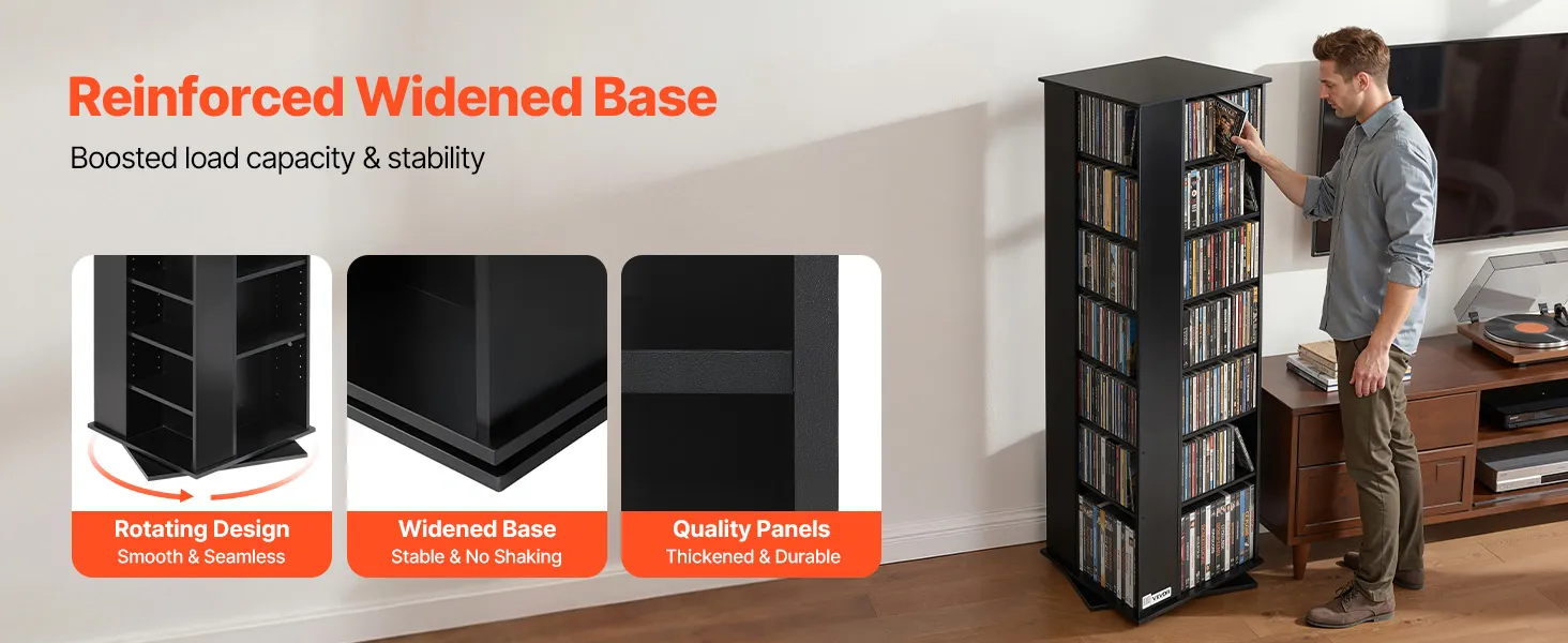 360° draaifunctie: Dit dvd-rek draait voor gemakkelijke toegang. U kunt uw dvd's snel en eenvoudig vinden en pakken. Ideaal voor veelvuldig gebruik – het bespaart tijd en moeite en maakt het opbergen van uw dvd's gemakkelijk.