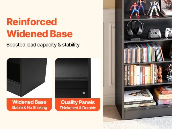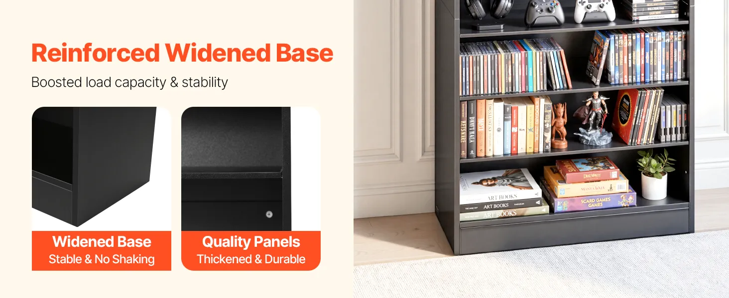 Equipped with a widened base, this DVD storage cabinet has enhanced stability, keeping the cabinet firmly in place. This solid construction helps shield your valuable collection, giving you peace of mind for everyday use.