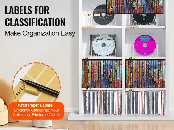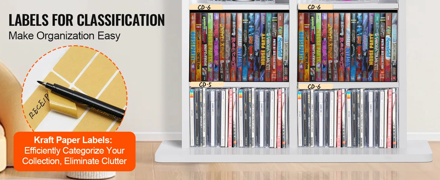 Efficient Organization: Equipped with kraft classification labels, you can easily categorize and manage each compartment according to your preferences, ensuring a well-organized media collection.
