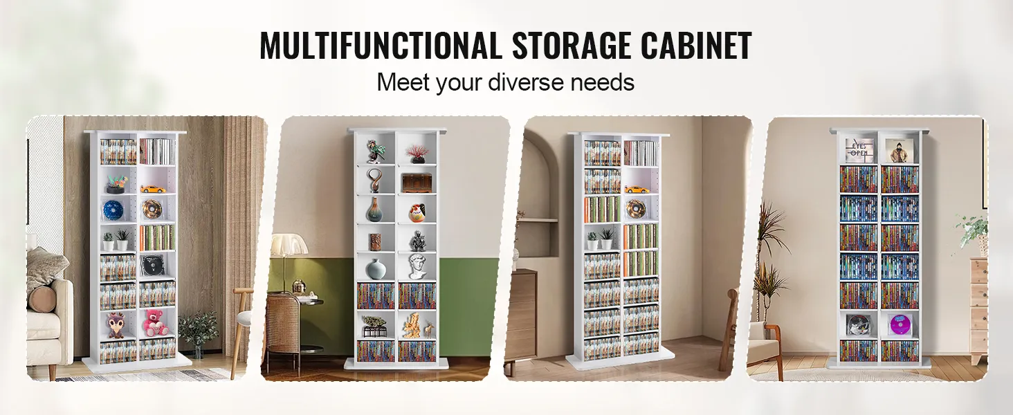 Effortlessly accommodates DVDs, CDs, books, small decorations, photos, and collectibles, our DVD cabinet serves as a perfect multi-functional storage solution for your home.
