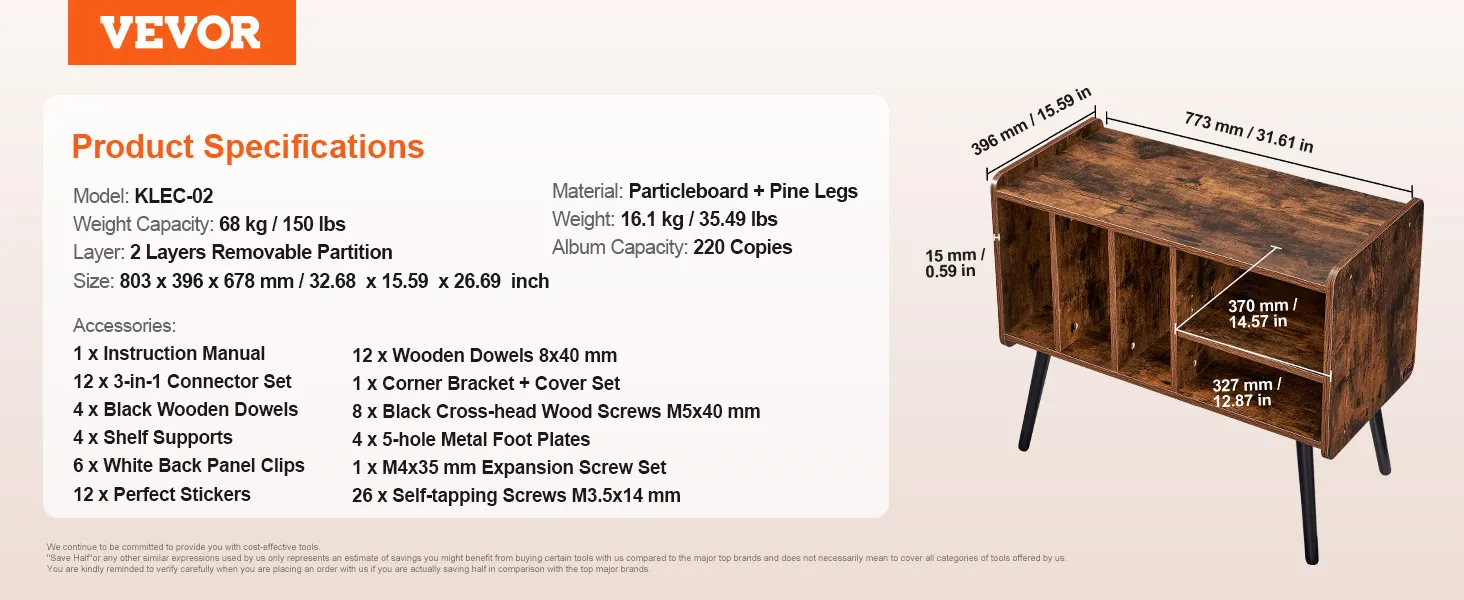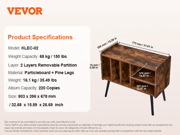 Elegant Display: The spacious tabletop, paired with an open storage rack, maximizes space utilization. Easily organize up to 220 albums, featuring side panels that prevent items from falling off the table, keeping your music collection neatly organized.