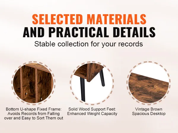 The U-shaped frame prevents records from tipping over or being damaged, while the solid wood support legs adapt to different floor types, carefully protecting each piece of your collection.