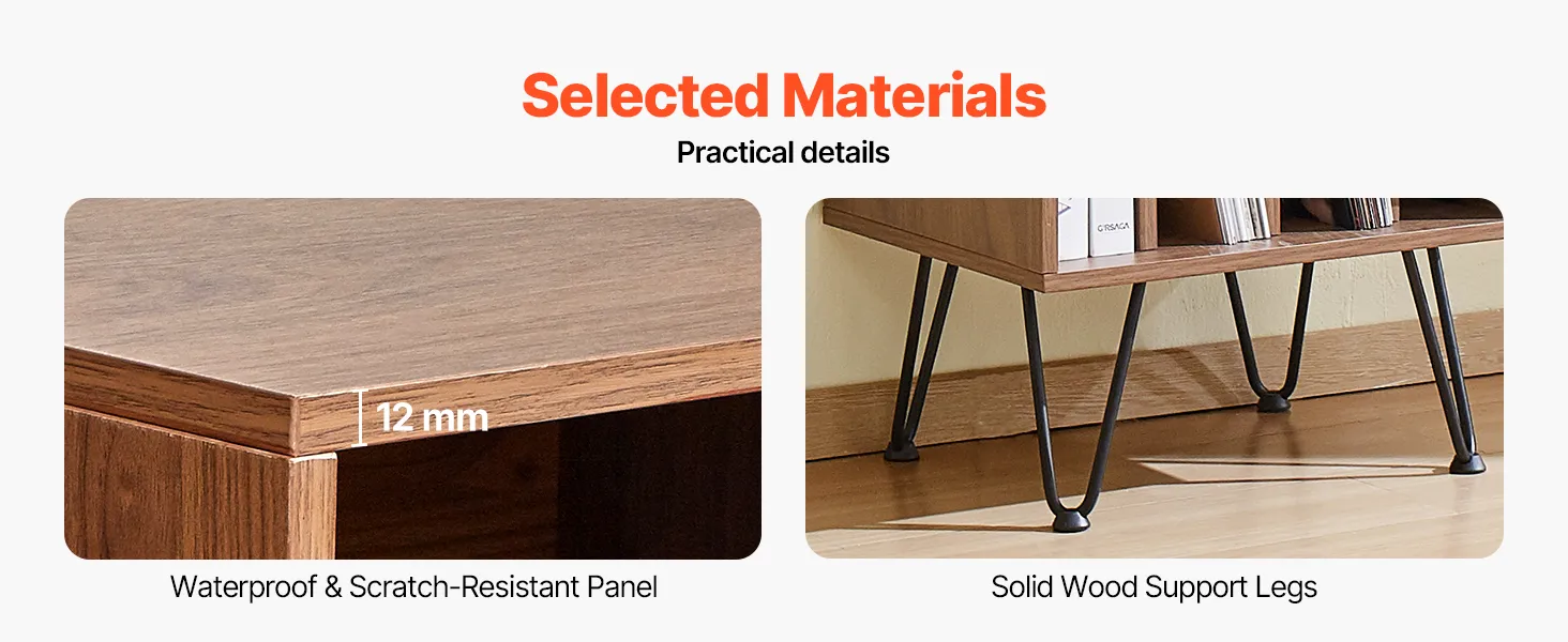 Made with premium waterproof and scratch-resistant panels, this record holder stand is designed to stay sturdy and stable, which ensures your furniture stays in shape and ready for years of use.