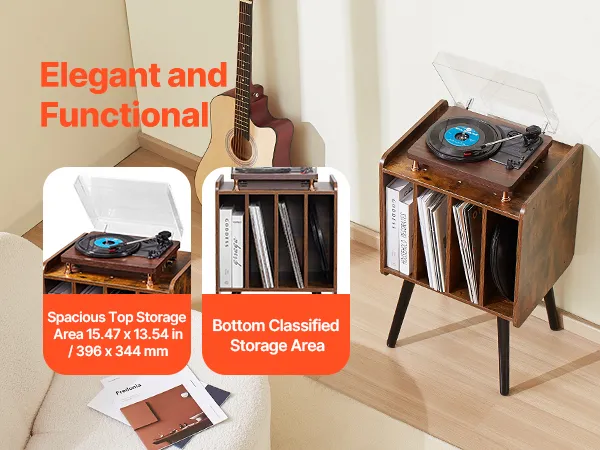 Versatile Use: Not just for storing vinyl, this record player shelf also doubles as a bedside table, side table, or coffee table. Its vintage design seamlessly fits into any room, adding both functionality and charm to your living space.