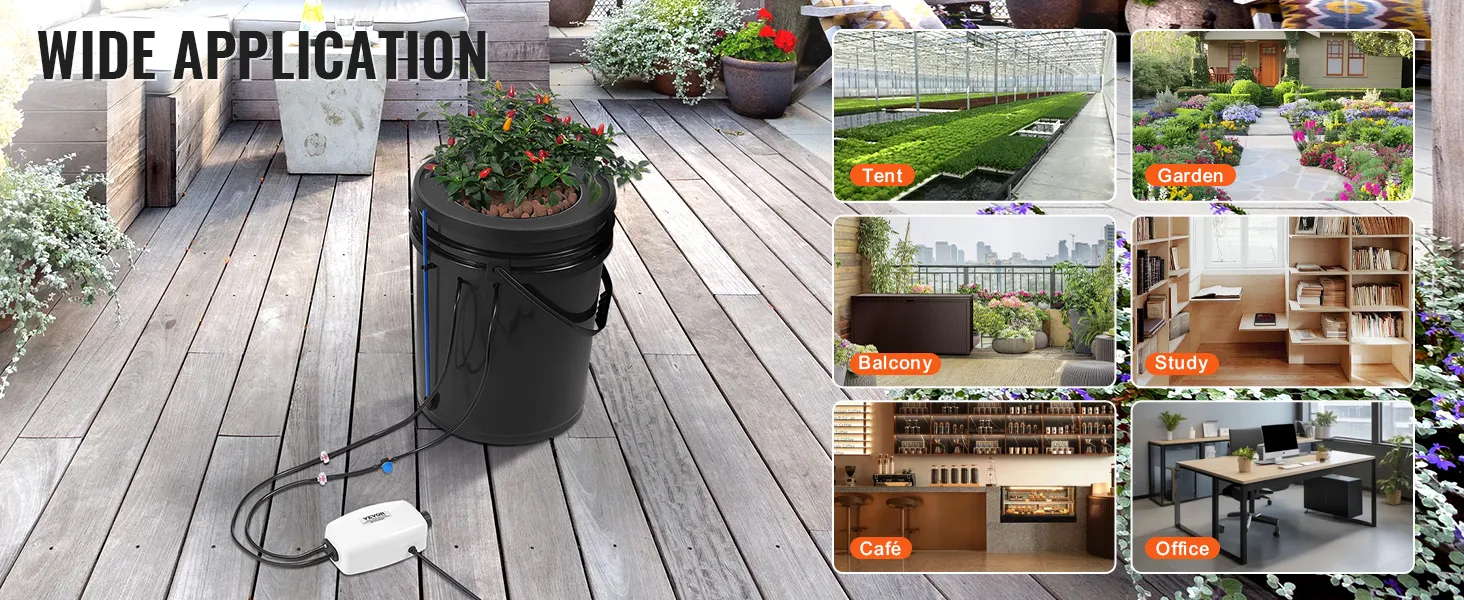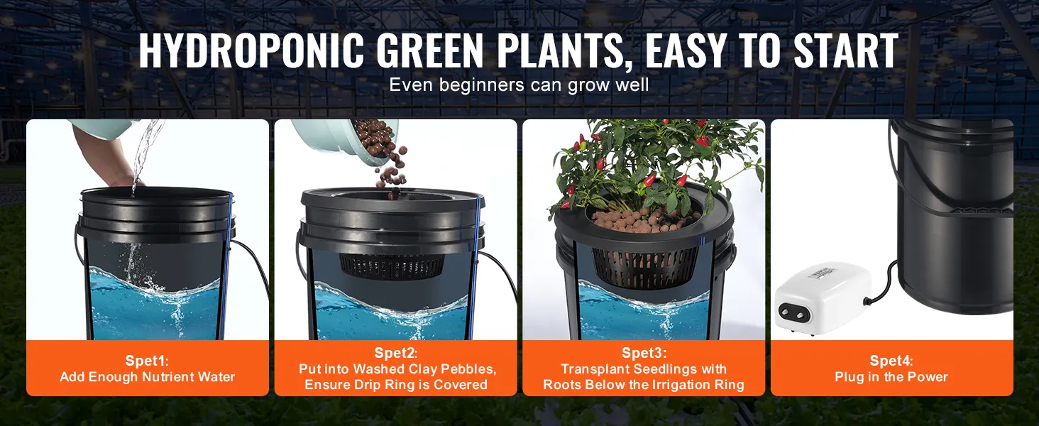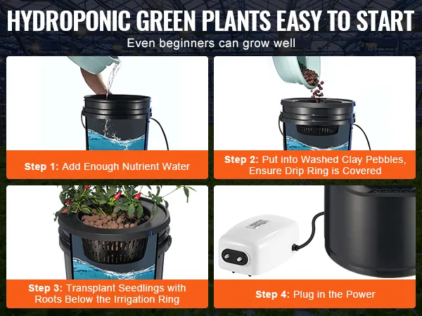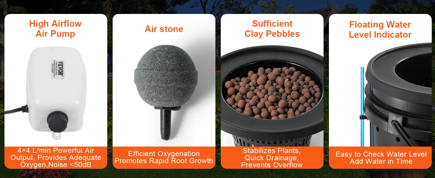 Powerful Air Pump & Air Stones: The air pump and air stones for deep water culture provide ample oxygen to each bucket via air tubing, ensuring that roots are submerged in nutrient-rich, high-oxygen water for faster and healthier growth.
