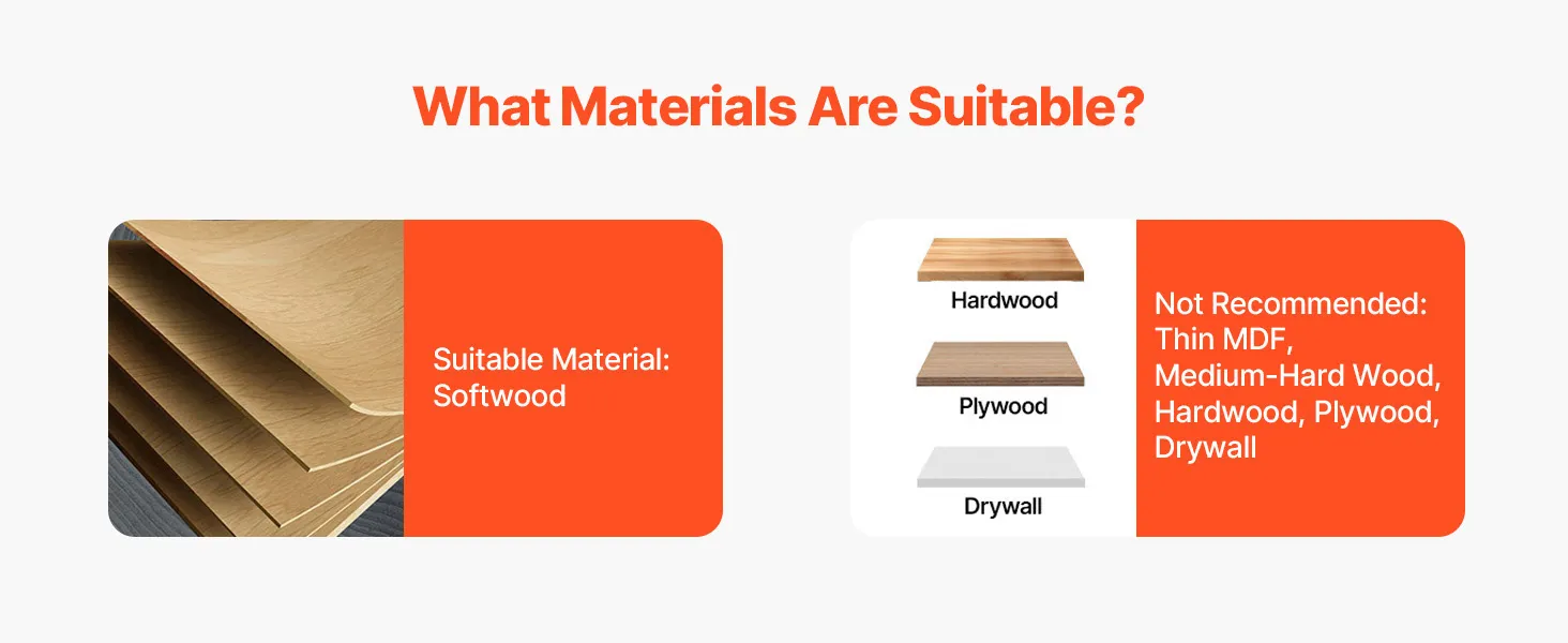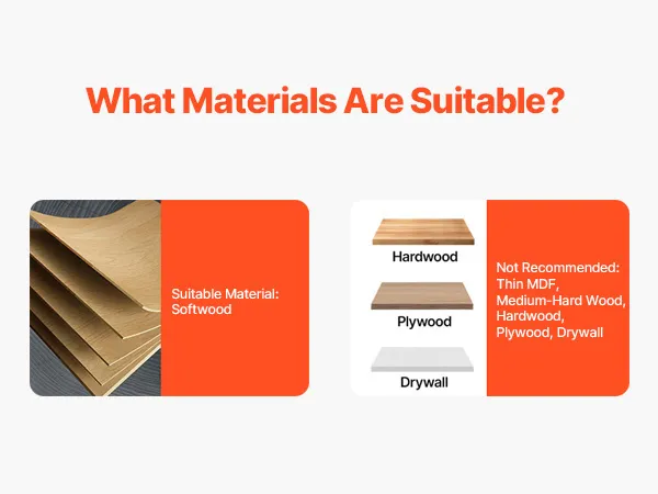 Onze elektrische nietmachine werkt op zacht grenen, douglas en dun MDF. Hij schroeft moeiteloos bevestigingsmiddelen vast en verkleint het risico op houtsplinters of oppervlakteschade.