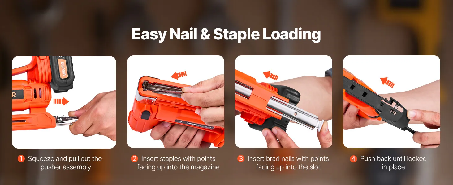 Moet het magazijn van uw elektrische bradspijkermachine worden bijgevuld? Volg vier snelle stappen om te herladen – eenvoudig en efficiënt.