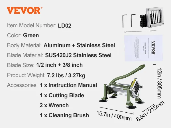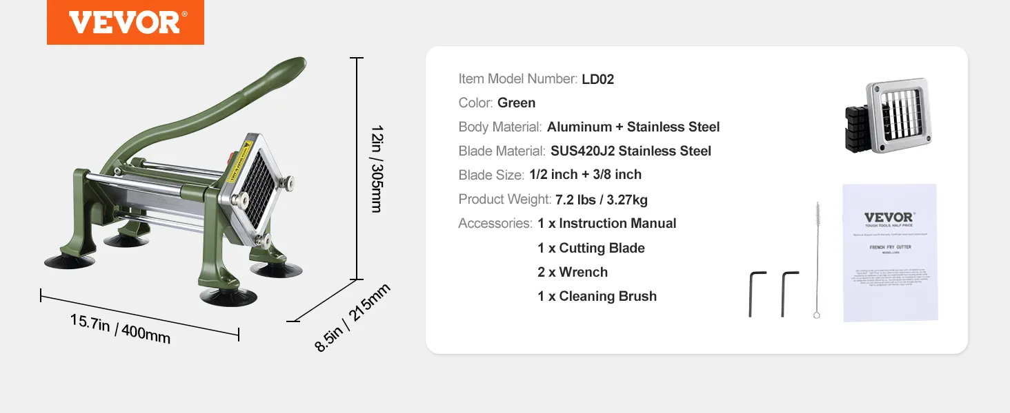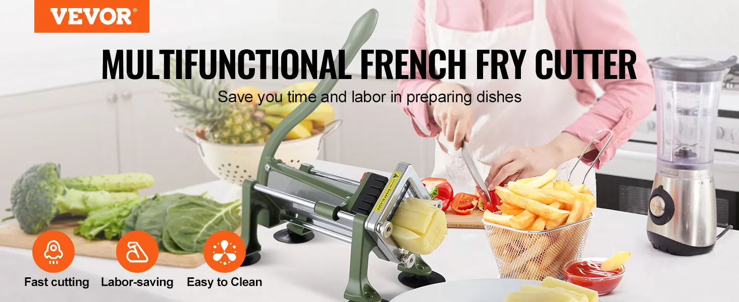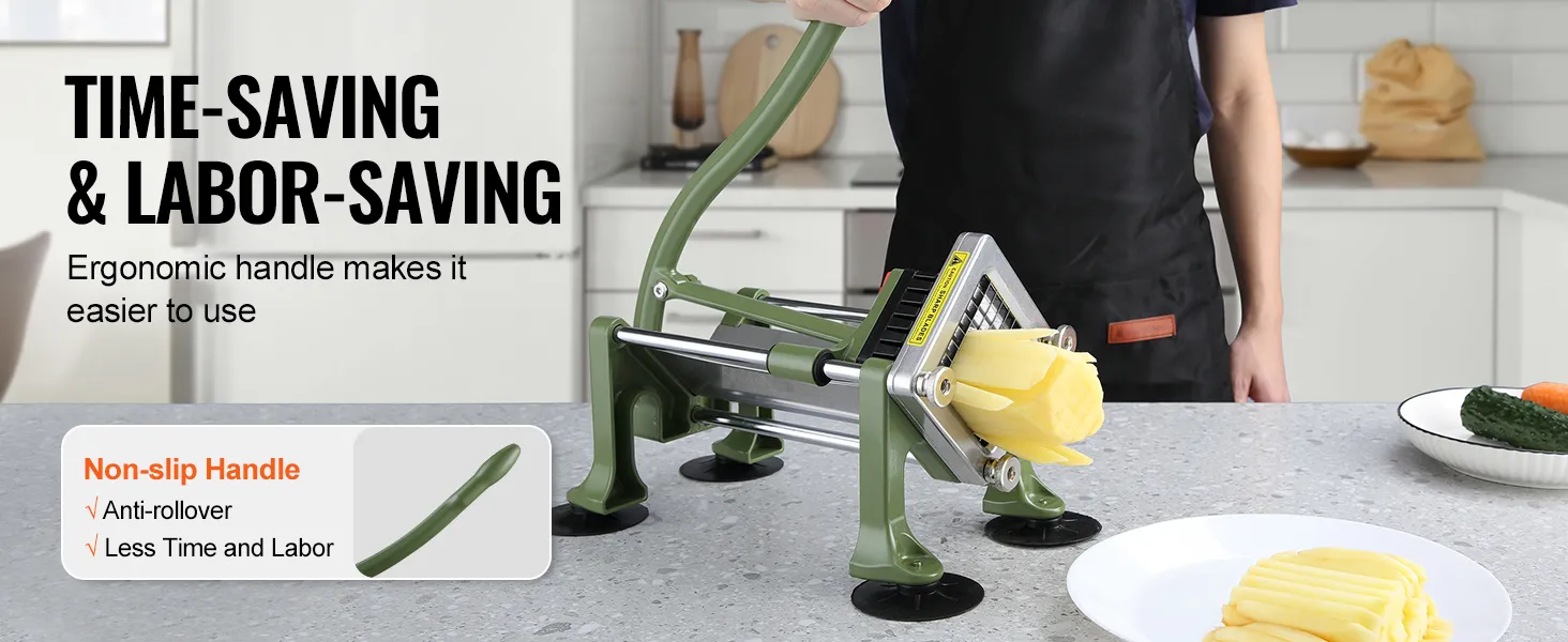 VEVOR French Fry Cutter, Potato Slicer with 1/2-Inch and 3/8-Inch Stainless Steel Blades, Manual Potato Cutter Chopper with Suction Cups, Great for Potato, French Fries, Cucumber, Vegetables, Carrot