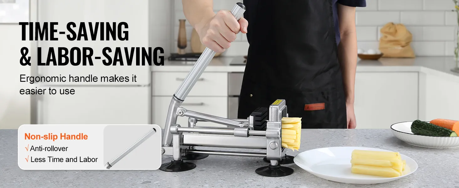 Versatile Application: The fry cutter is suitable for restaurants, dessert shops, and home kitchens. Ideal for individuals who want to prepare vegetables and fruits for salads, French fries, and desserts, significantly saving preparation time.