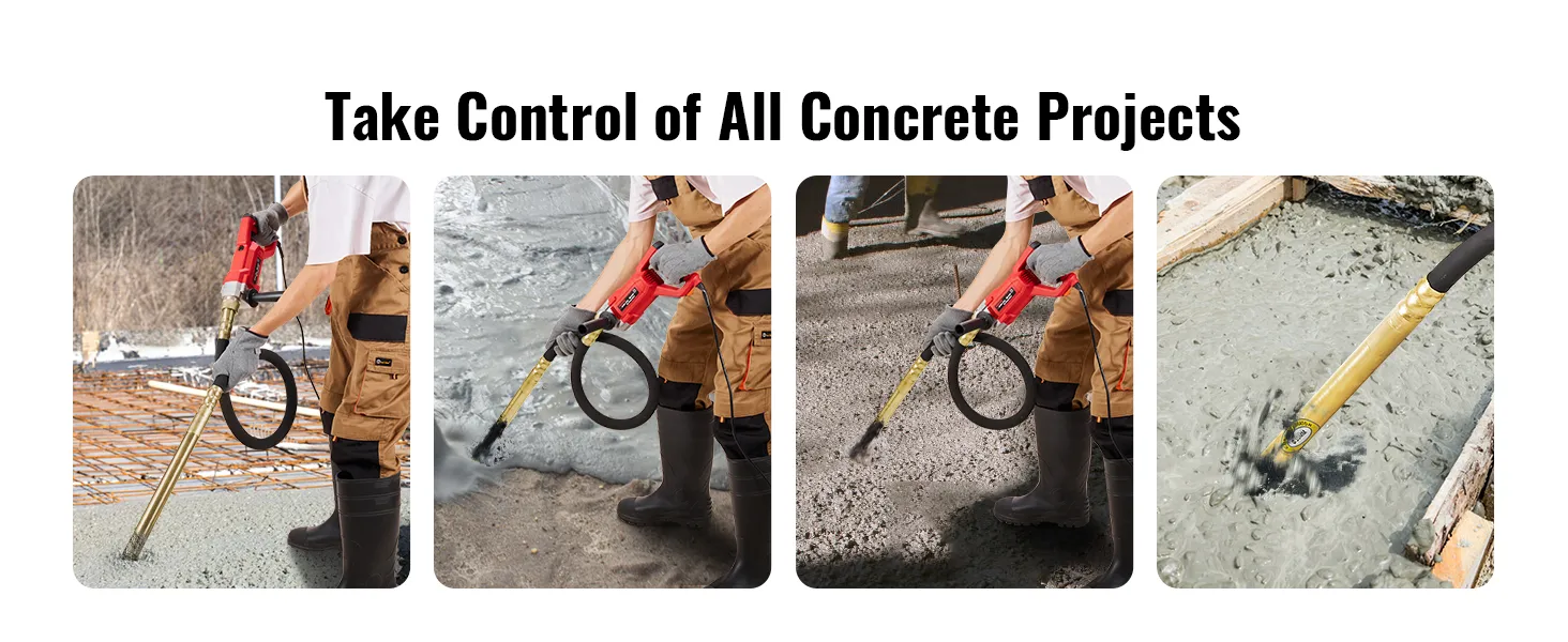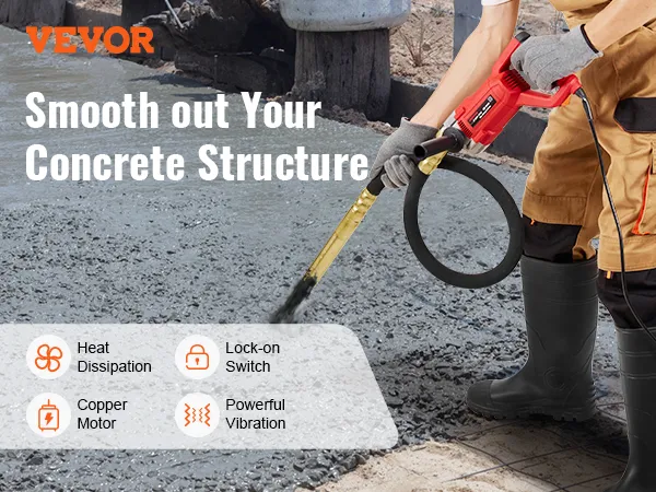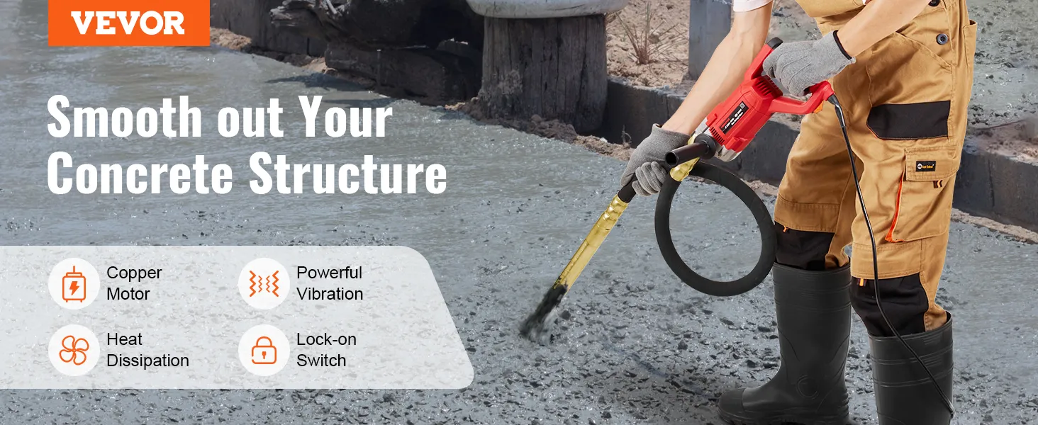 Ready to make your concrete surfaces tougher? The concrete vibrator is an essential tool for any construction project involving concrete. With the 4000 RPM vibration frequency, VEVOR's concrete vibrators improve the strength and durability of concrete structures and achieve a perfect, even finish.