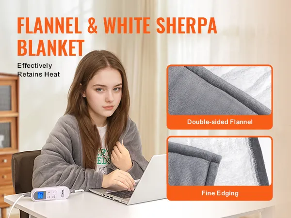 Our heating blanket boasts flannel and white sherpa, giving you that luxurious comfort with a super-soft edge design. It is breathable, gentle, and feels like a dream on the skin.