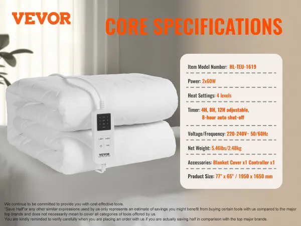 Left And Right Zoning: Equipped with 60Wx2 high power to ensure rapid warming, with left and right zoning individual temperature control function, so that two people no longer need to accommodate the use of each adjusted to the ideal temperature to enhance the degree of comfort.