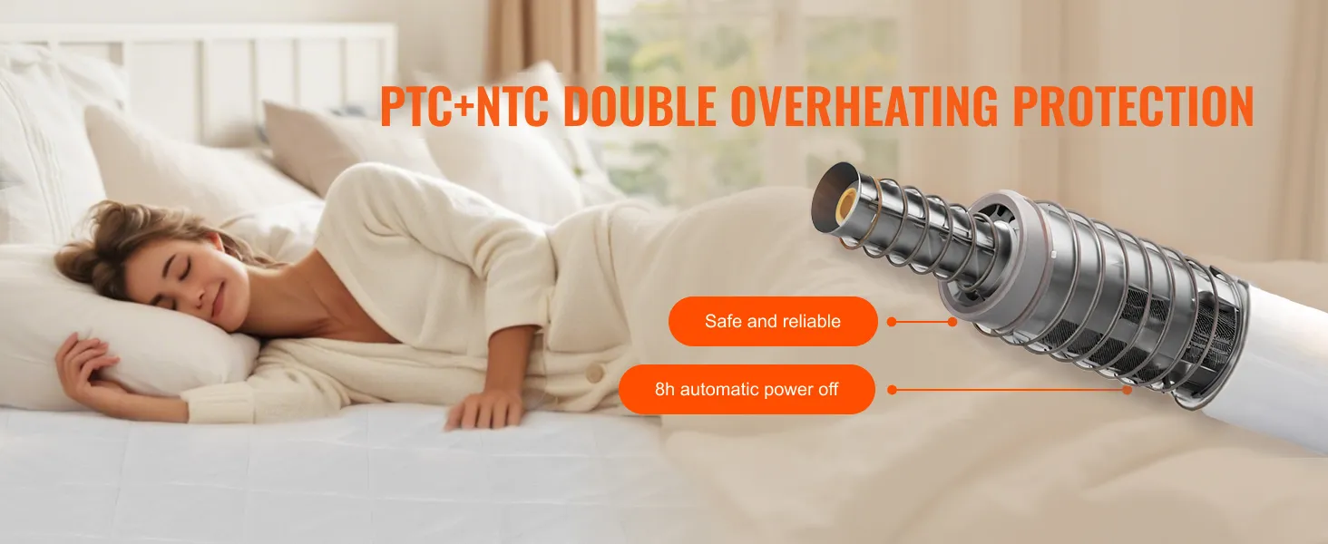 The electric blanket adopts advanced PTC+NTC double overheating protection technology, which can effectively prevent the blanket from overheating and avoid potential fire risks, so you can enjoy the warmth of the blanket while enjoying