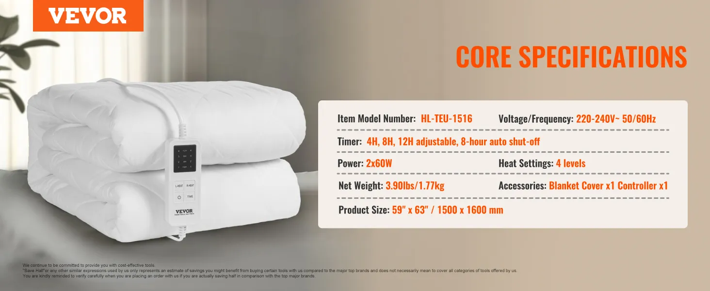 Left And Right Zoning: Equipped with 60Wx2 high power to ensure rapid warming, with left and right zoning individual temperature control function, so that two people no longer need to accommodate the use of each adjusted to the ideal temperature to enhance the degree of comfort.