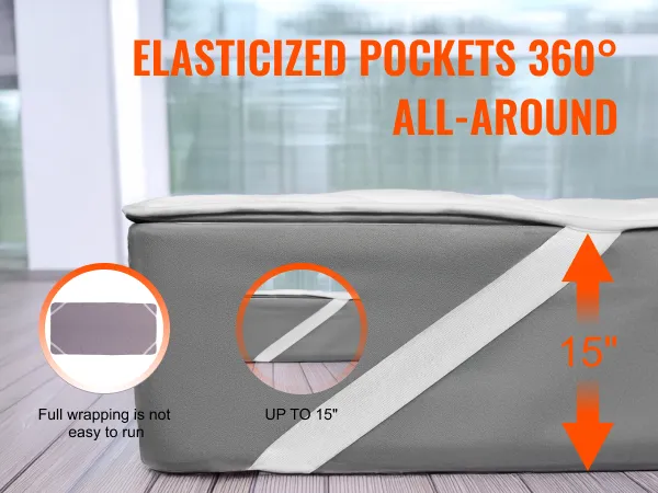 15 inches deep elastic pocket design, 360° omni-directional wrapping, effectively maintains the shape of the mattress, not easy to run out of shape, suitable for most mattresses.