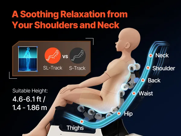 De ergonomische SL-rail en 3D-full-bodymassagetechnologie scannen automatisch uw lichaam en activeren 36 intelligente airbags voor een uitgebreide massage van uw schouders tot uw enkels, waardoor elke centimeter van uw lichaam ontspant.