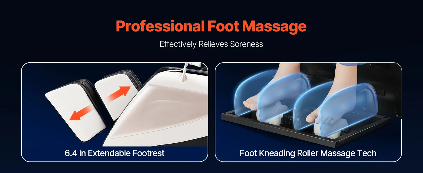 Rekken van het hele lichaam: de beenairbags oefenen druk uit om de fascia te rekken, terwijl de voetrollen de drukpunten intensief stimuleren om voetpijn te verlichten. De verstelbare rugleuning maakt het mogelijk om het hele lichaam te strekken, waardoor het ideaal is voor spierontspanning na het sporten en om vermoeidheid te verlichten