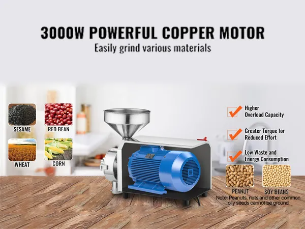 Various Applications: The electric corn grain machine set also includes one dust-proof bag, one feeding bar, one brush, one steel brush, one spoon, one extra overload protector, one bearing, four abrasive disks, and some tools. It is perfect for grinding all kinds of materials, such as grain, sesame, walnut, soybean, corn, spice, sorghum, etc.